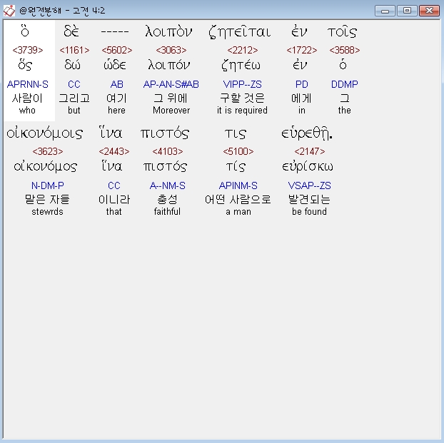 헬라어신약Stephanos,2 ο δε λοιπον ζητειται εν τοις οικονομοις ινα πιστος τις ευρεθη