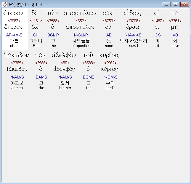 헬라어신약Stephanos,19 ετερον δε των αποστολων ουκ ειδον ει μη ιακωβον τον αδελφον του κυριου