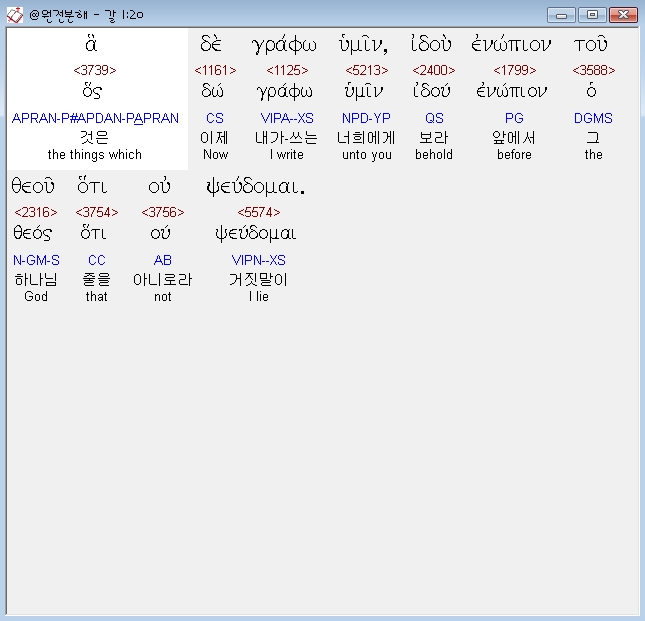 헬라어신약Stephanos,20 α δε γραφω υμιν ιδου ενωπιον του θεου οτι ου ψευδομαι