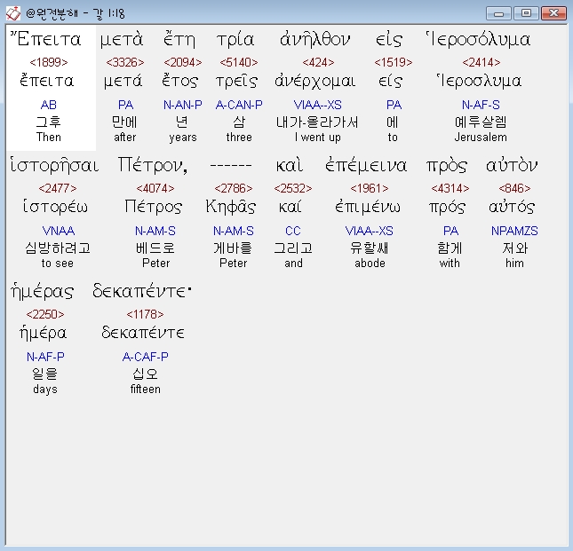 헬라어신약Stephanos,18 επειτα μετα ετη τρια ανηλθον εις ιεροσολυμα ιστορησαι πετρον και επεμεινα προς αυτον ημερας δεκαπεντε