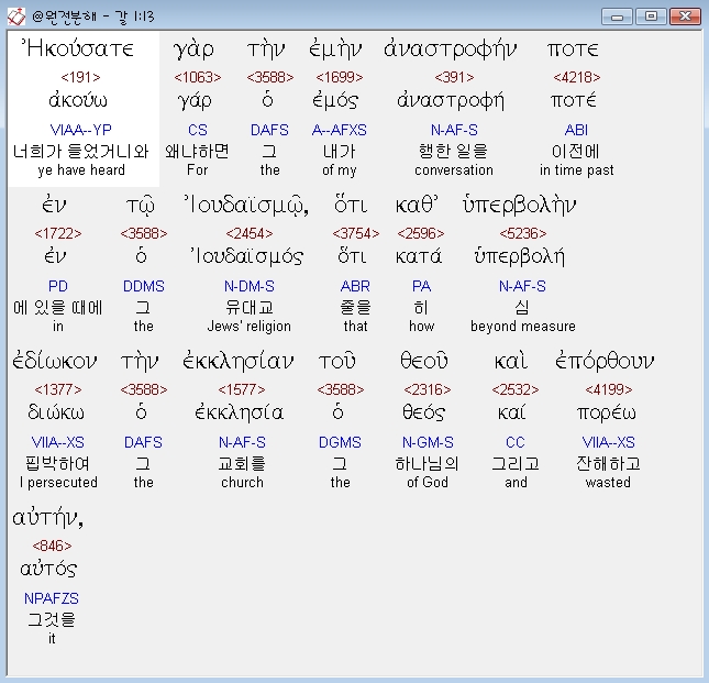 | 헬라어 갈라디아서 2장 전체 원어 원문 성경 공부 주석 강해 설교 해설 해석 (0) | 2020.10.25 |