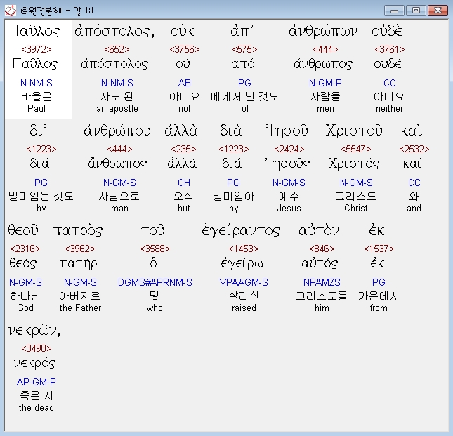 헬라어신약Stephanos,1 παυλος αποστολος ουκ απ ανθρωπων ουδε δι ανθρωπου αλλα δια ιησου χριστου και θεου πατρος του εγειραντος αυτον εκ νεκρων