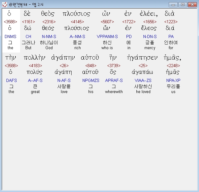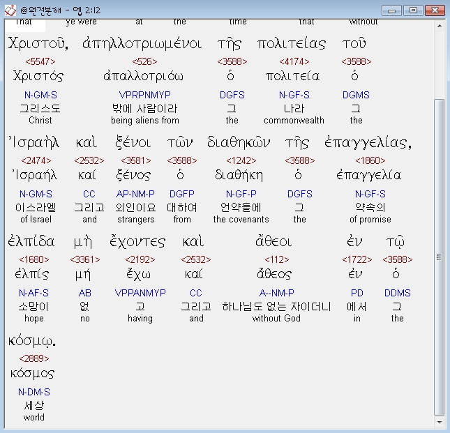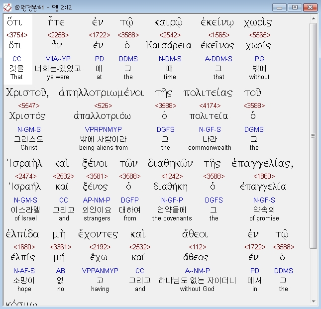 | 헬라어 에베소서 4장 전체 원어 원문 성경 공부 주석 강해 설교 해설 해석 (0) | 2020.10.25 |