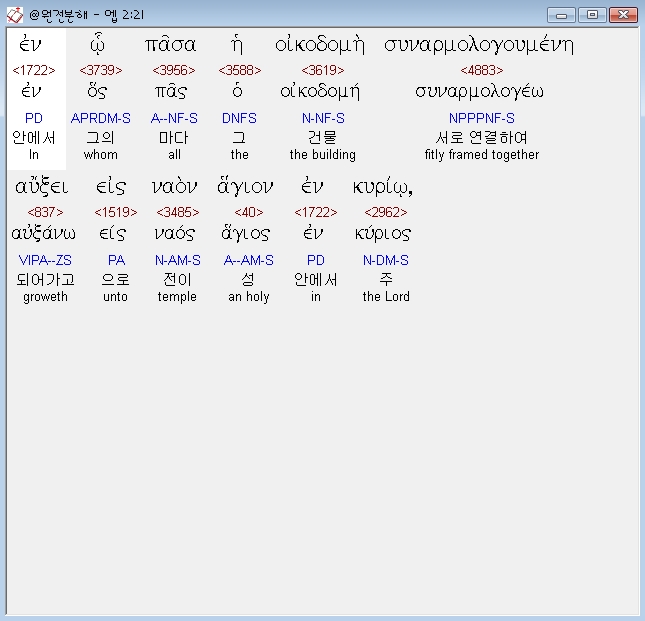 헬라어신약Stephanos,21 εν ω πασα η οικοδομη συναρμολογουμενη αυξει εις ναον αγιον εν κυριω
