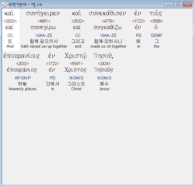 헬라어신약Stephanos,6 και συνηγειρεν και συνεκαθισεν εν τοις επουρανιοις εν χριστω ιησου