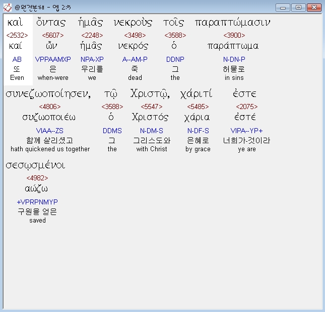 헬라어신약Stephanos,5 και οντας ημας νεκρους τοις παραπτωμασιν συνεζωοποιησεν τω χριστω χαριτι εστε σεσωσμενοι