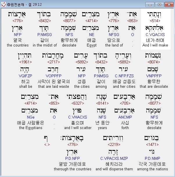 | 히브리어 에스겔 30장 전체 원어 원문 성경 공부 주석 강해 설교 해설 해석 (0) | 2020.10.26 |