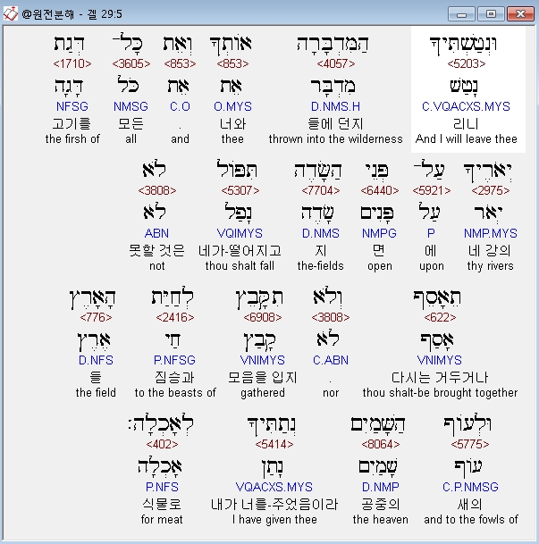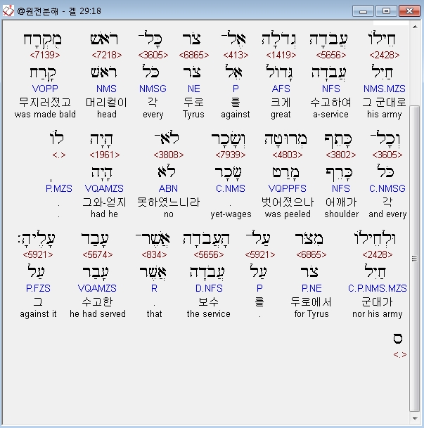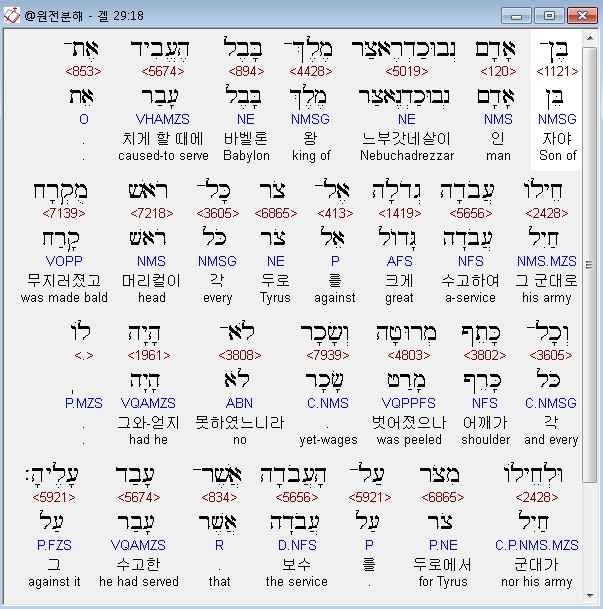 | 히브리어 에스겔 28장 전체 원어 원문 성경 공부 주석 강해 설교 해설 해석 (0) | 2020.10.26 |