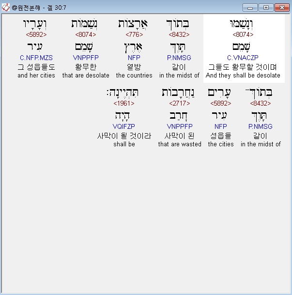 | 히브리어 에스겔 31장 전체 원어 원문 성경 공부 주석 강해 설교 해설 해석 (0) | 2020.10.26 |