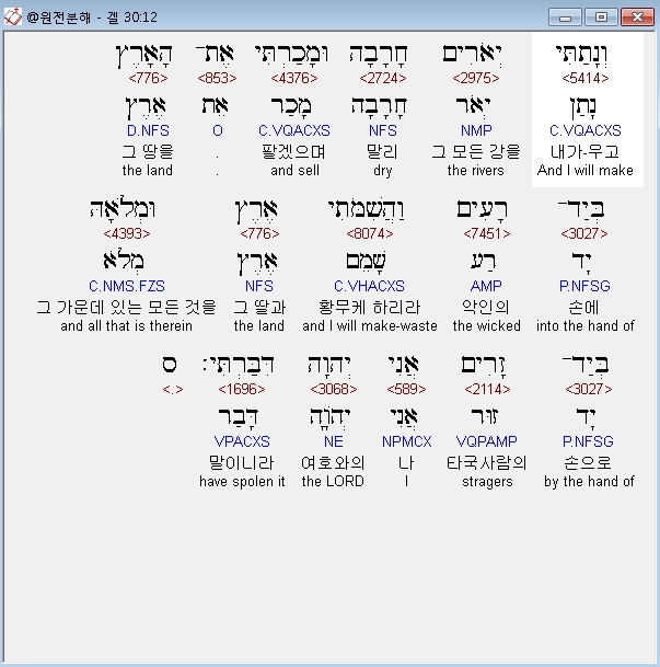 | 히브리어 에스겔 28장 전체 원어 원문 성경 공부 주석 강해 설교 해설 해석 (0) | 2020.10.26 |