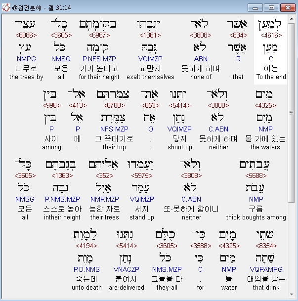 | 히브리어 에스겔 28장 전체 원어 원문 성경 공부 주석 강해 설교 해설 해석 (0) | 2020.10.26 |