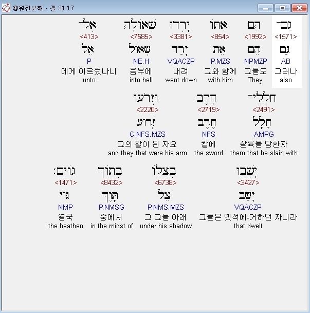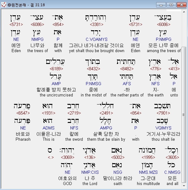 | 히브리어 에스겔 32장 전체 원어 원문 성경 공부 주석 강해 설교 해설 해석 (0) | 2020.10.26 |