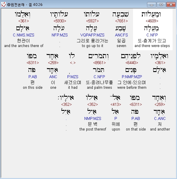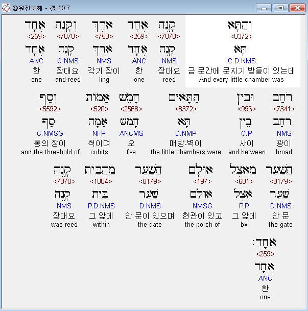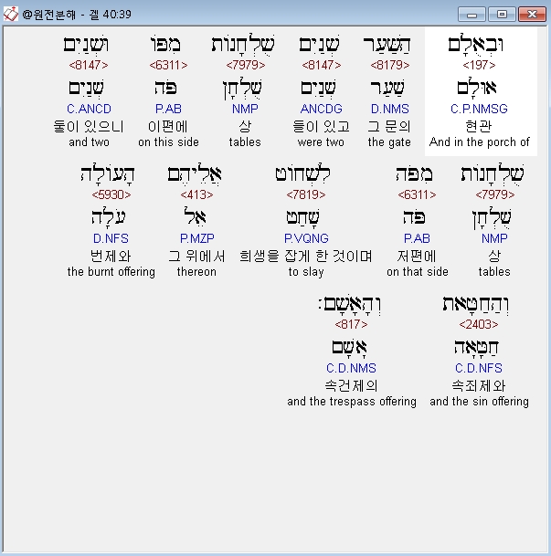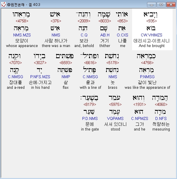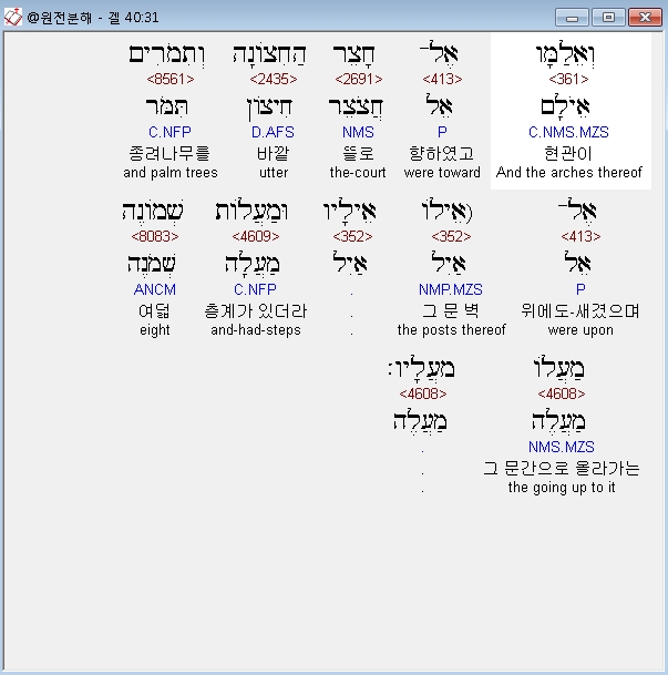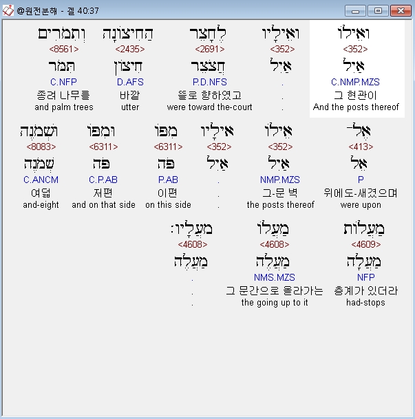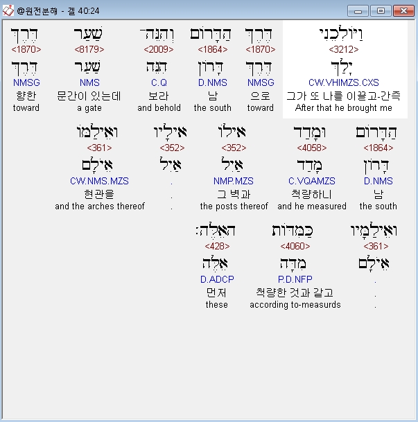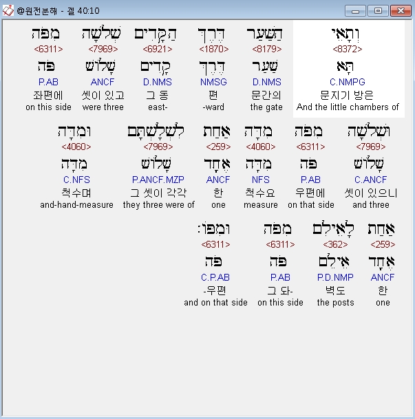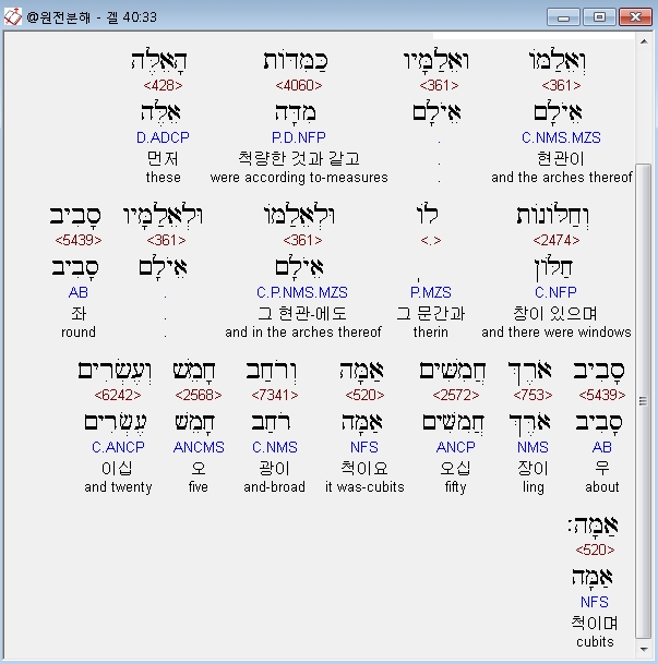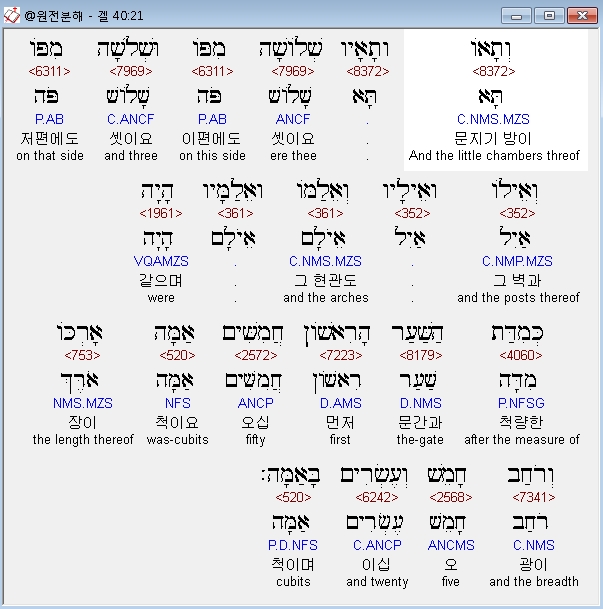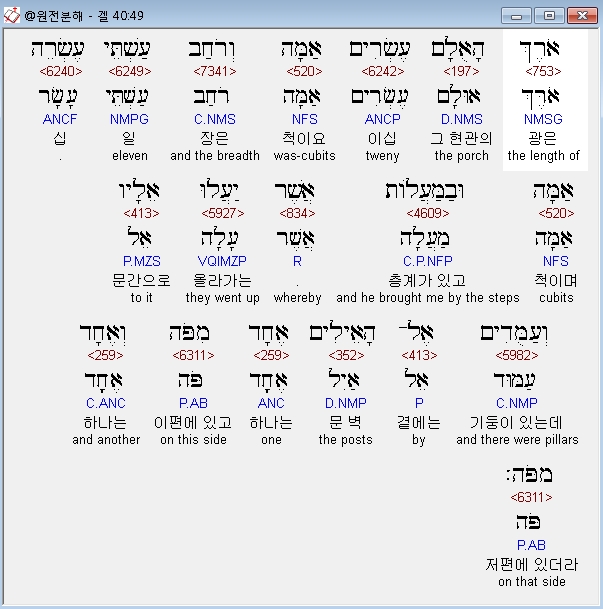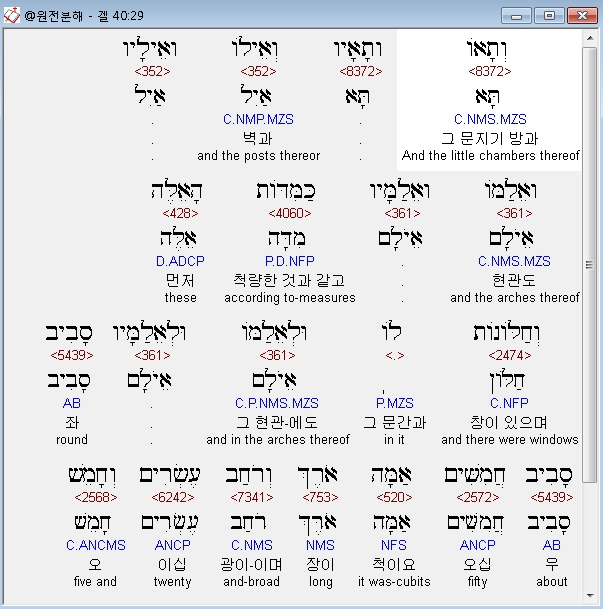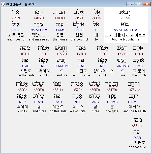 | 히브리어 에스겔 41장 전체 원어 원문 성경 공부 주석 강해 설교 해설 해석 (0) | 2020.10.26 |