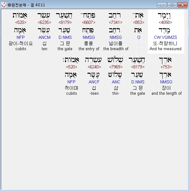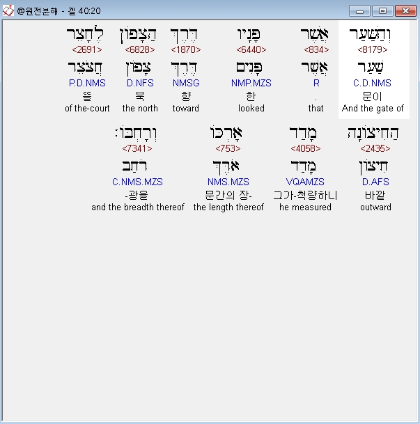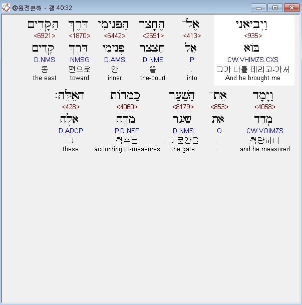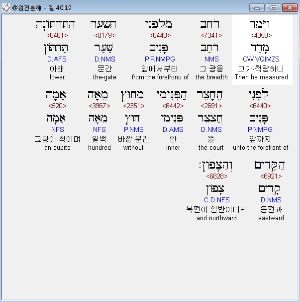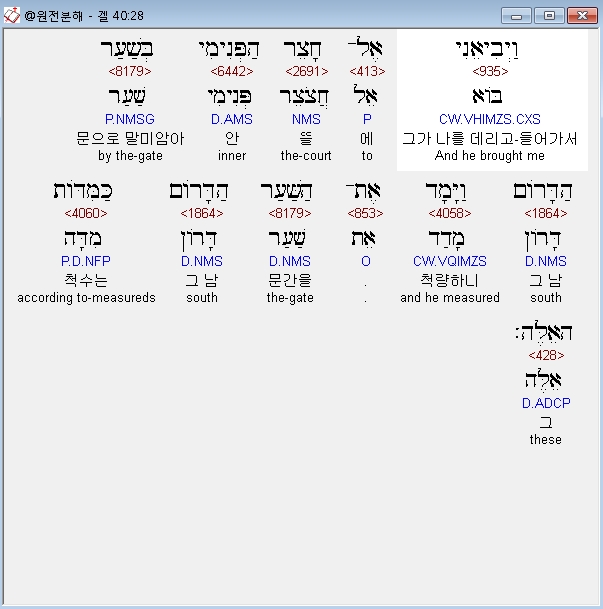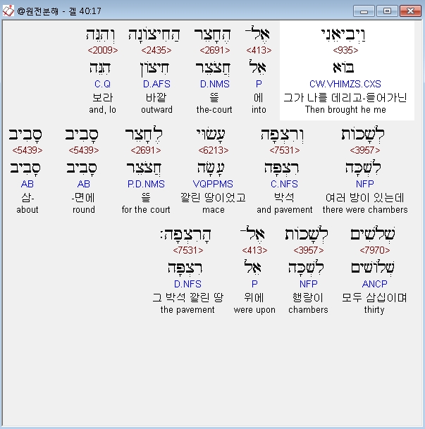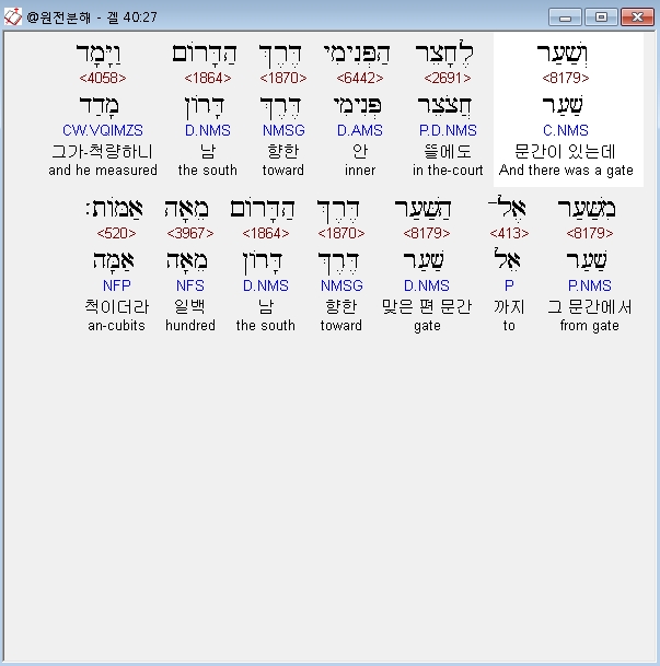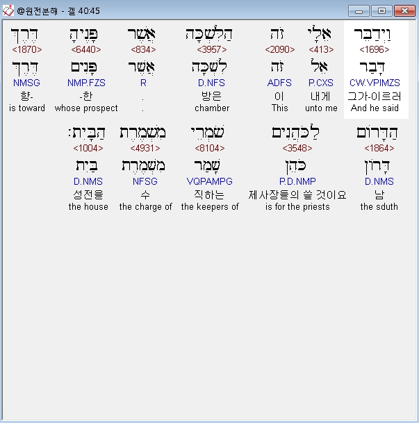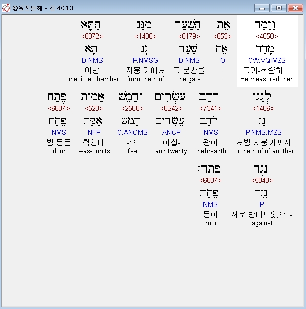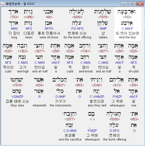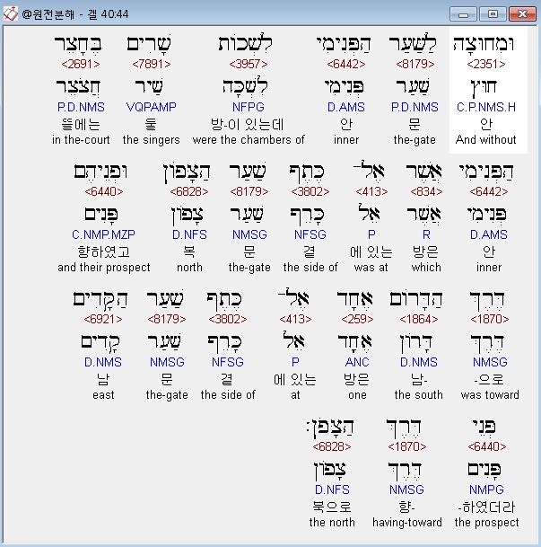 | 히브리어 에스겔 42장 전체 원어 원문 성경 공부 주석 강해 설교 해설 해석 (0) | 2020.10.26 |