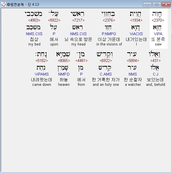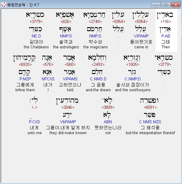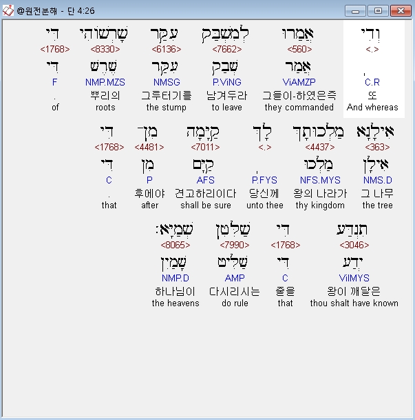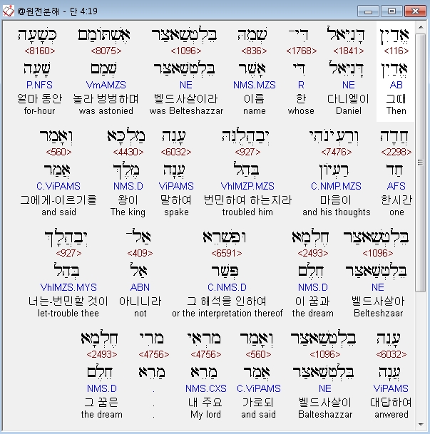 | 히브리어 다니엘 2장 전체 원어 원문 성경 공부 주석 강해 설교 해설 해석 (0) | 2020.10.26 |