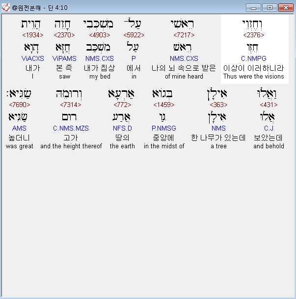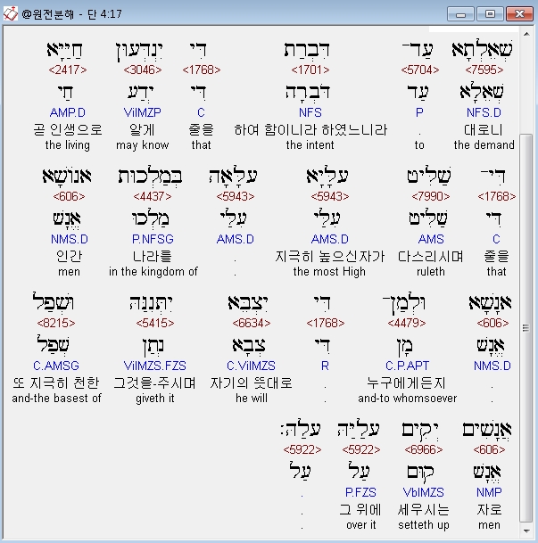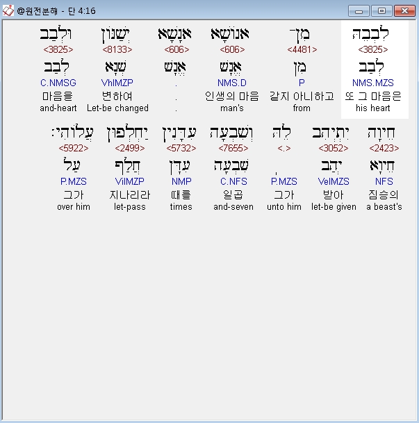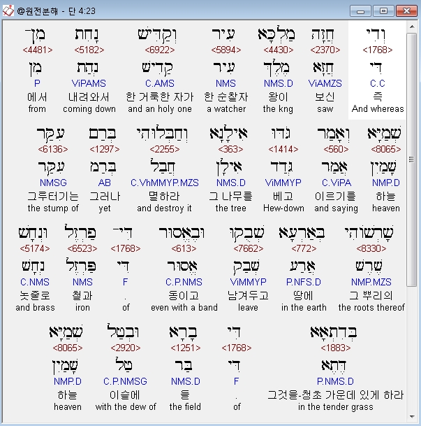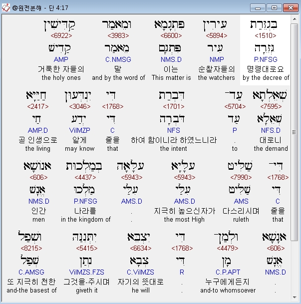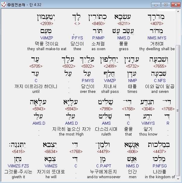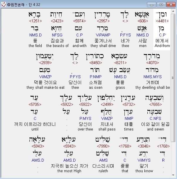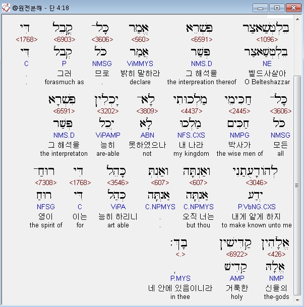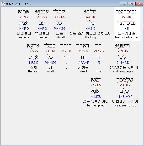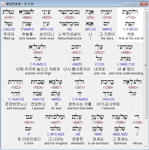 | 히브리어 다니엘 3장 전체 원어 원문 성경 공부 주석 강해 설교 해설 해석 (0) | 2020.10.26 |