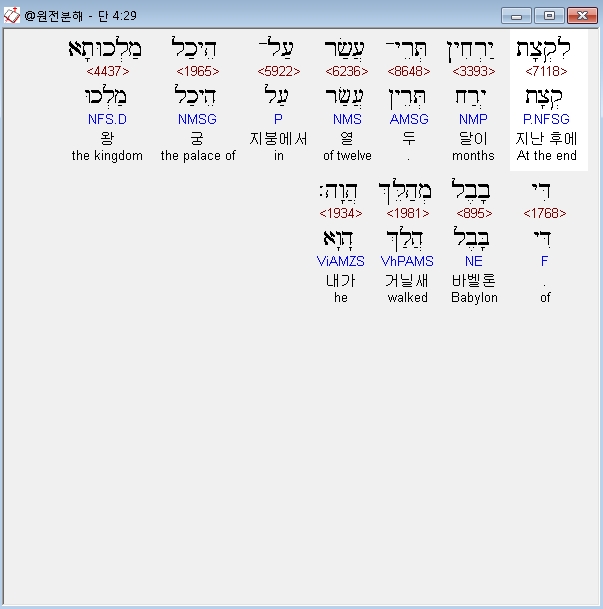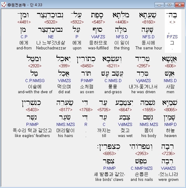 | 히브리어 다니엘 5장 전체 원어 원문 성경 공부 주석 강해 설교 해설 해석 (0) | 2020.10.26 |