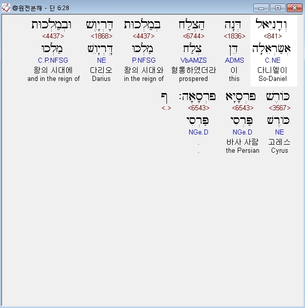 히브리어구약BHS,28 וְדָנִיֵּאל דְּנָה הַצְלַח בְּמַלְכוּת דָּרְיָוֶשׁ וּבְמַלְכוּת כֹּורֶשׁ [כ= פָּרְסָיָא] [ק= פָּרְסָאָה]׃ ף