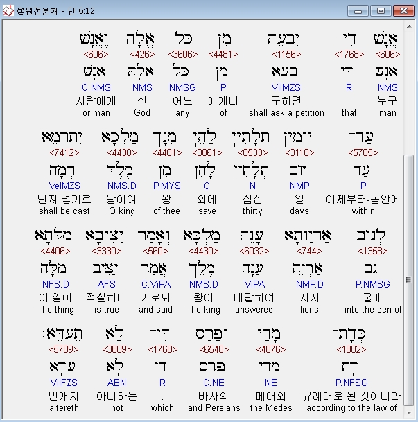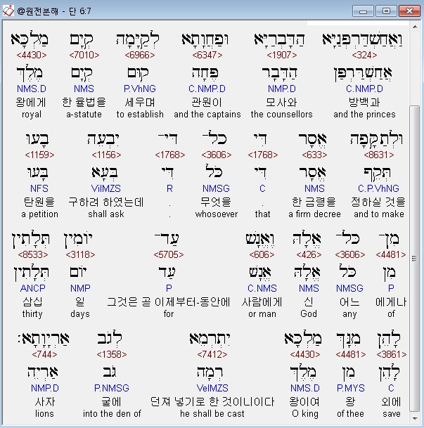 | 히브리어 다니엘 4장 전체 원어 원문 성경 공부 주석 강해 설교 해설 해석 (0) | 2020.10.26 |