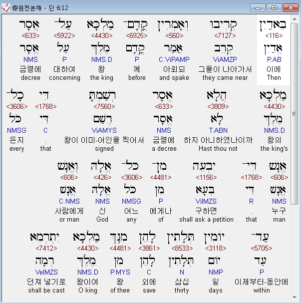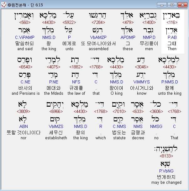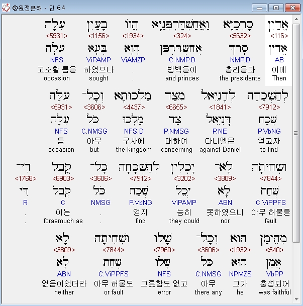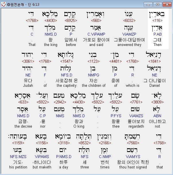 | 히브리어 다니엘 3장 전체 원어 원문 성경 공부 주석 강해 설교 해설 해석 (0) | 2020.10.26 |
