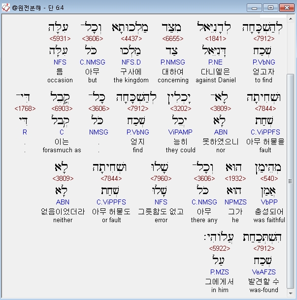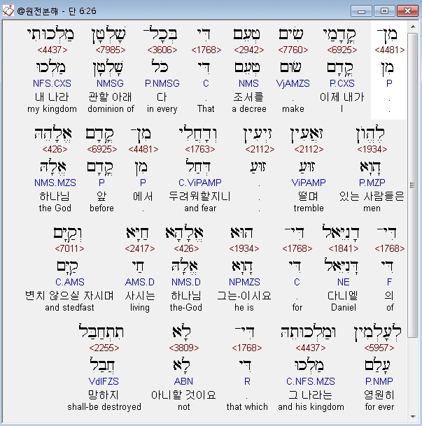 | 히브리어 다니엘 7장 전체 원어 원문 성경 공부 주석 강해 설교 해설 해석 (0) | 2020.10.26 |