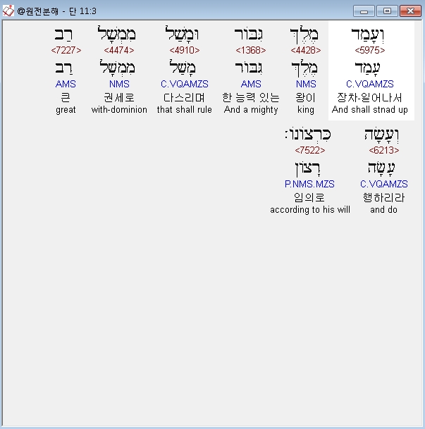 히브리어구약BHS,3 וְעָמַד מֶלֶךְ גִּבֹּור וּמָשַׁל מִמְשָׁל רַב וְעָשָׂה כִּרְצֹונֹו׃
