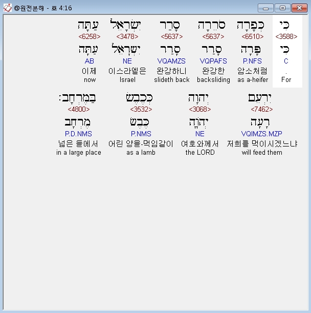 히브리어구약BHS,16 כִּי כְּפָרָה סֹרֵרָה סָרַר יִשְׂרָאֵל עַתָּה יִרְעֵם יְהוָה כְּכֶבֶשׂ בַּמֶּרְחָב׃