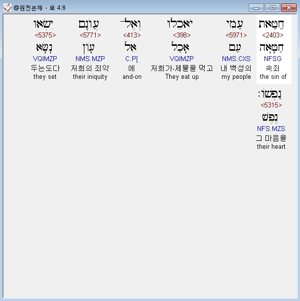 | 히브리어 호세아 2장 전체 원어 원문 성경 공부 주석 강해 설교 해설 해석 (0) | 2020.10.26 |