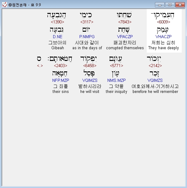 | 히브리어 호세아 6장 전체 원어 원문 성경 공부 주석 강해 설교 해설 해석 (0) | 2020.10.26 |
