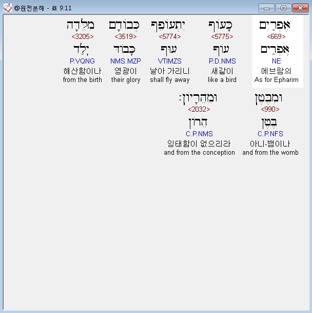 히브리어구약BHS,11 אֶפְרַיִם כָּעֹוף יִתְעֹוףֵף כְּבֹודָם מִלֵּדָה וּמִבֶּטֶן וּמֵהֵרָיֹון׃