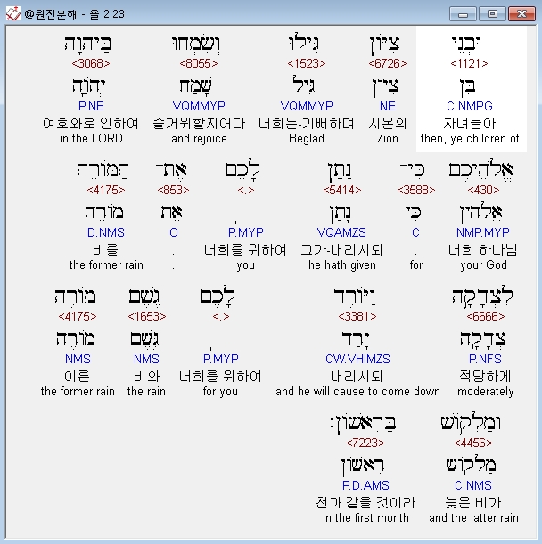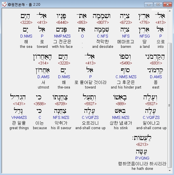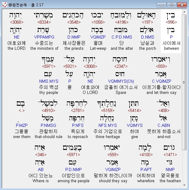 | 히브리어 요엘 3장 전체 원어 원문 성경 공부 주석 강해 설교 해설 해석 (0) | 2020.10.27 |