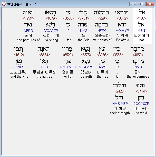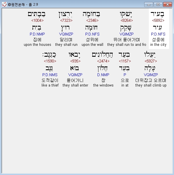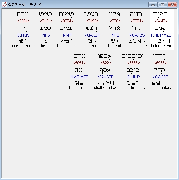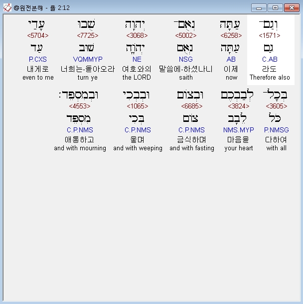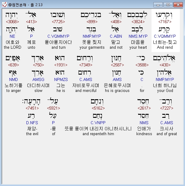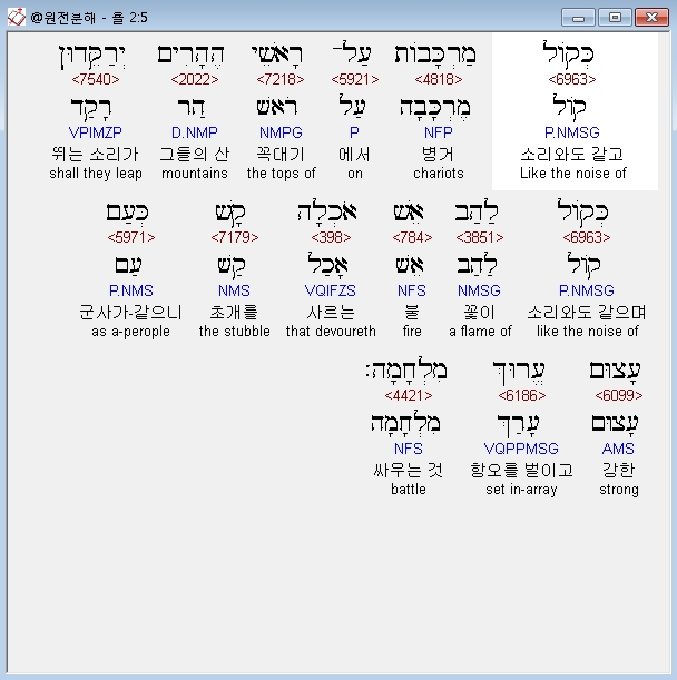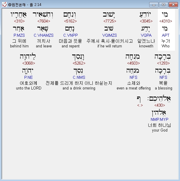 | 히브리어 요엘 1장 전체 원어 원문 성경 공부 주석 강해 설교 해설 해석 (0) | 2020.10.27 |