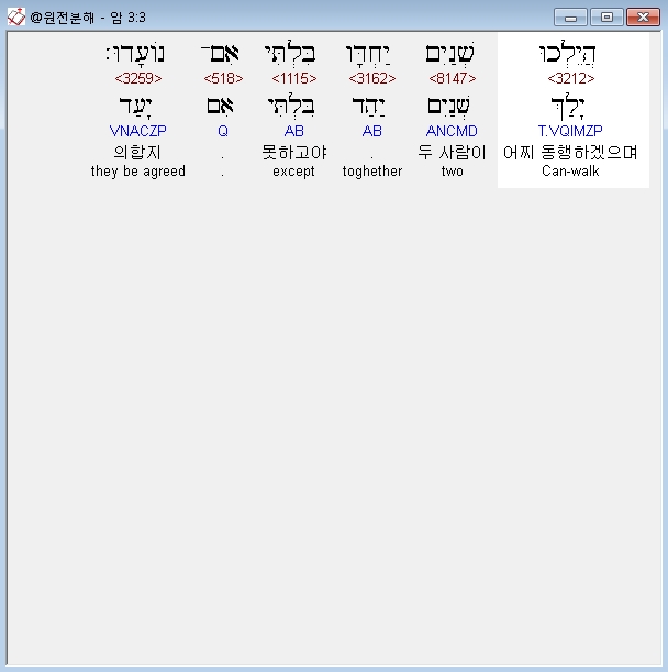 히브리어구약BHS,3 הֲיֵלְכוּ שְׁנַיִם יַחְדָּו בִּלְתִּי אִם־נֹועָדוּ׃
