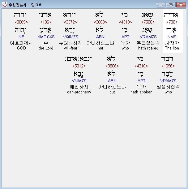 | 히브리어 아모스 1장 전체 원어 원문 성경 공부 주석 강해 설교 해설 해석 (0) | 2020.10.27 |