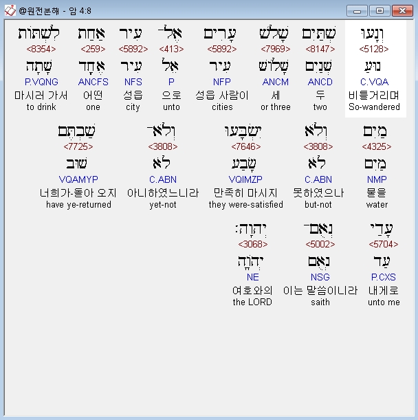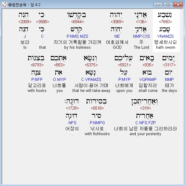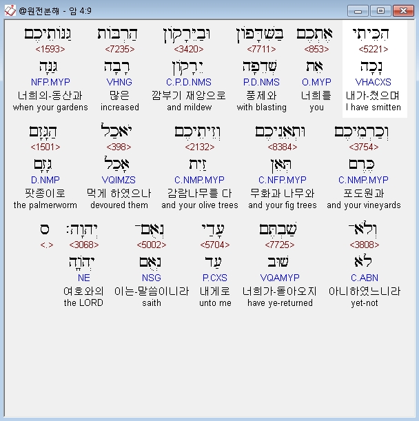 | 히브리어 아모스 5장 전체 원어 원문 성경 공부 주석 강해 설교 해설 해석 (0) | 2020.10.27 |