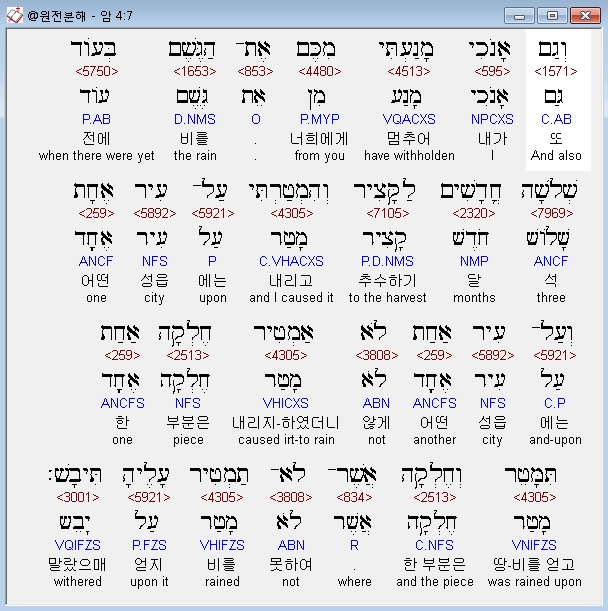 | 히브리어 아모스 1장 전체 원어 원문 성경 공부 주석 강해 설교 해설 해석 (0) | 2020.10.27 |