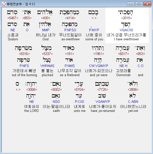 헬라어구약Septuagint,11 κατεστρεψα υμας καθως κατεστρεψεν ο θεος σοδομα και γομορρα και εγενεσθε ως δαλος εξεσπασμενος εκ πυρος και ουδ' ως επεστρεψατε προς με λεγει κυριος