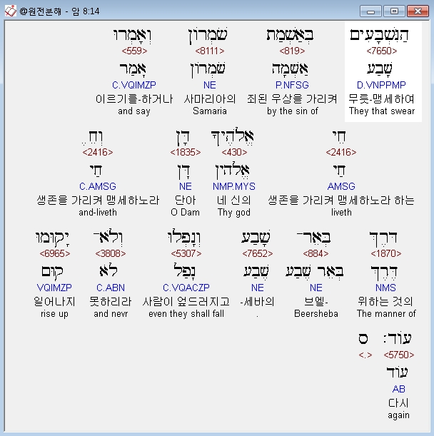 헬라어구약Septuagint,14 οι ομνυοντες κατα του ιλασμου σαμαρειας και οι λεγοντες ζη ο θεος σου δαν και ζη ο θεος σου βηρσαβεε και πεσουνται και ου μη αναστωσιν ετι