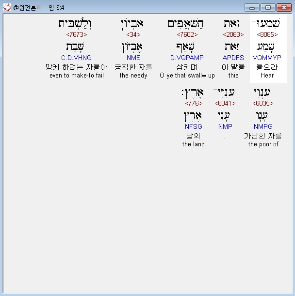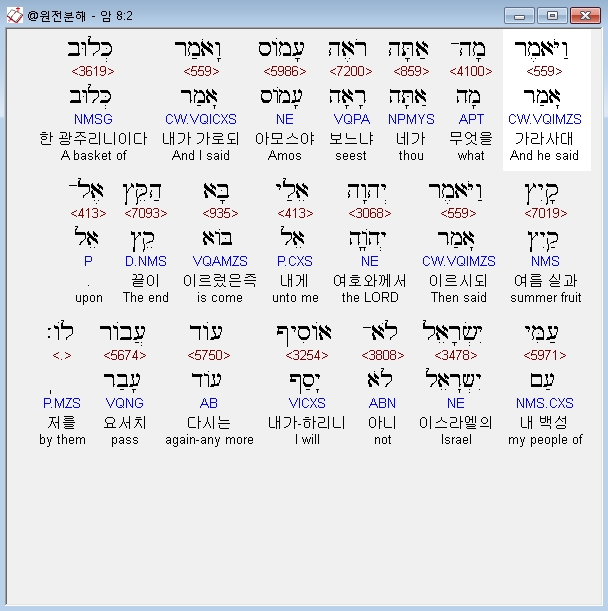 | 히브리어 아모스 7장 전체 원어 원문 성경 공부 주석 강해 설교 해설 해석 (0) | 2020.10.27 |