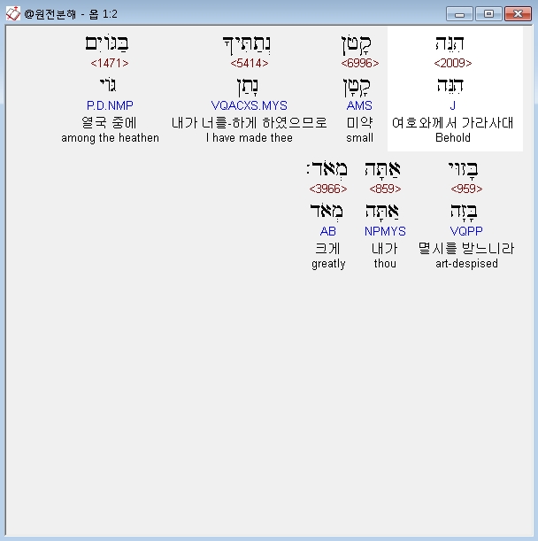 히브리어구약BHS,2 הִנֵּה קָטֹן נְתַתִּיךָ בַּגֹּויִם בָּזוּי אַתָּה מְאֹד׃