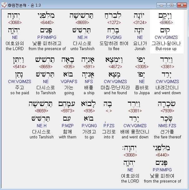 | 히브리어 요나 3장 전체 원어 원문 성경 공부 주석 강해 설교 해설 해석 (0) | 2020.10.27 |