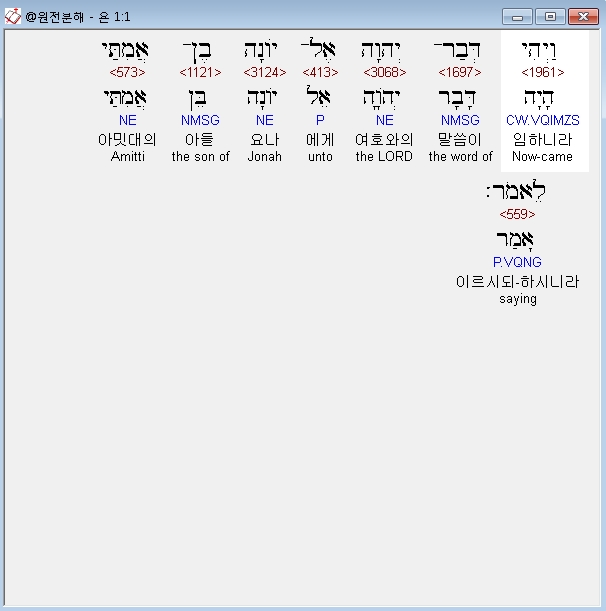 히브리어구약BHS,1 וַיְהִי דְּבַר־יְהוָה אֶל־יֹונָה בֶן־אֲמִתַּי לֵאמֹר׃