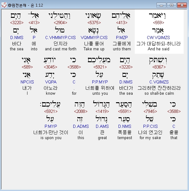 | 히브리어 요나 2장 전체 원어 원문 성경 공부 주석 강해 설교 해설 해석 (0) | 2020.10.27 |