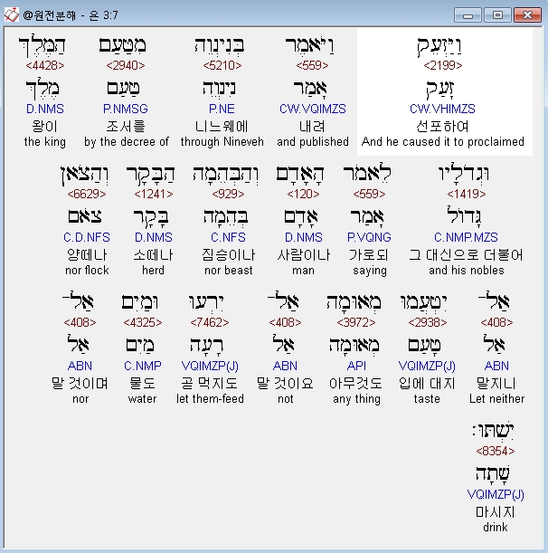 | 히브리어 요나 4장 전체 원어 원문 성경 공부 주석 강해 설교 해설 해석 (0) | 2020.10.27 |