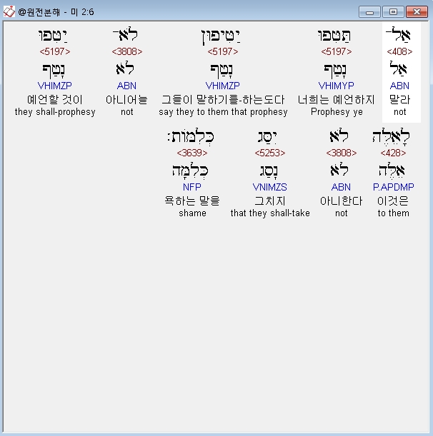 히브리어구약BHS,6 אַל־תַּטִּפוּ יַטִּיפוּן לֹא־יַטִּפוּ לָאֵלֶּה לֹא יִסַּג כְּלִמֹּות׃
