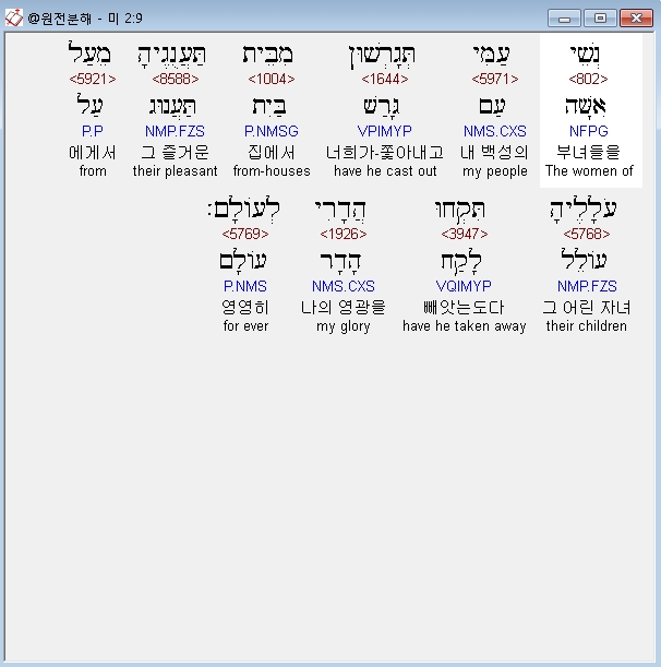 | 히브리어 미가 1장 전체 원어 원문 성경 공부 주석 강해 설교 해설 해석 (0) | 2020.10.27 |