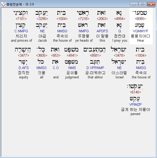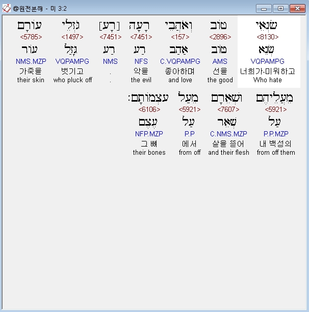 | 히브리어 미가 2장 전체 원어 원문 성경 공부 주석 강해 설교 해설 해석 (0) | 2020.10.27 |