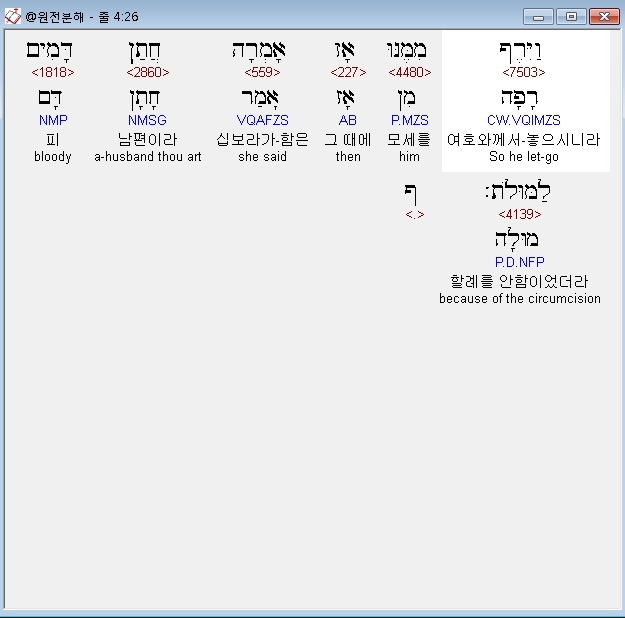 영어MSG,26 Then GOD let him go. She used the phrase "bridegroom of blood" because of the circumcision.
