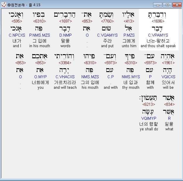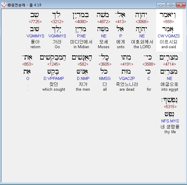 | 히브리어 출애굽기 5장 전체 원어 원문 성경 공부 주석 강해 설교 해설 해석 (0) | 2020.09.26 |