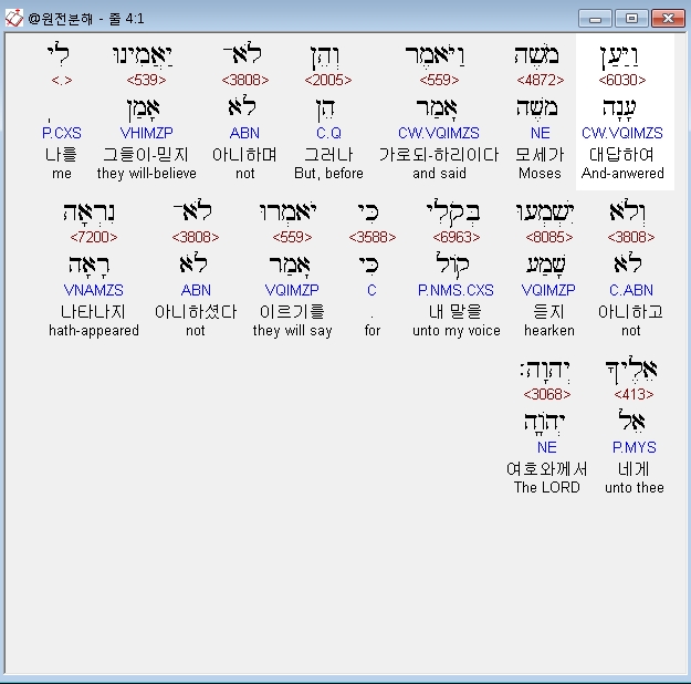 히브리어구약BHS,1 וַיַּעַן מֹשֶׁה וַיֹּאמֶר וְהֵן לֹא־יַאֲמִינוּ לִי וְלֹא יִשְׁמְעוּ בְּקֹלִי כִּי יֹאמְרוּ לֹא־נִרְאָה אֵלֶיךָ יְהוָה׃